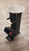 Portable, multipurpose use. Steel construction. Stainless steel grill. Made in Canada.